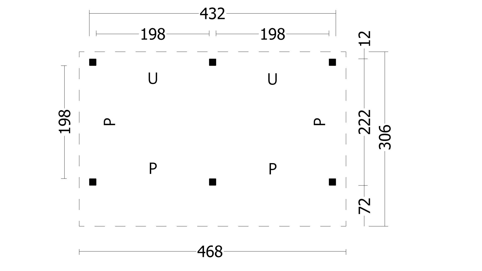 Afmeting: 306 cm x 468 cm x 282 cm ( Diepte x Breedte X Hoogte )