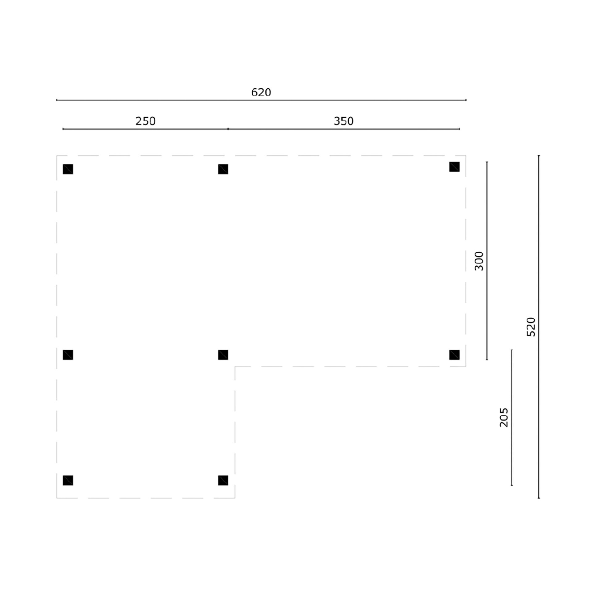 Afmeting: 620 cm x 520 cm x 262 cm ( Diepte x Breedte x Nokhoogte )