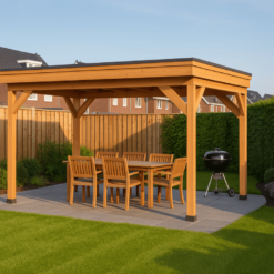 Deze douglas overkapping 400×300 cm is een slimme keuze voor wie op zoek is naar kwaliteit, uitstraling én gebruiksgemak. Of je nu een knusse plek wilt creëren voor het hele gezin, of een stijlvolle overkapping als verlengstuk van je woning: met dit complete bouwpakket bouw je het gewoon zelf.