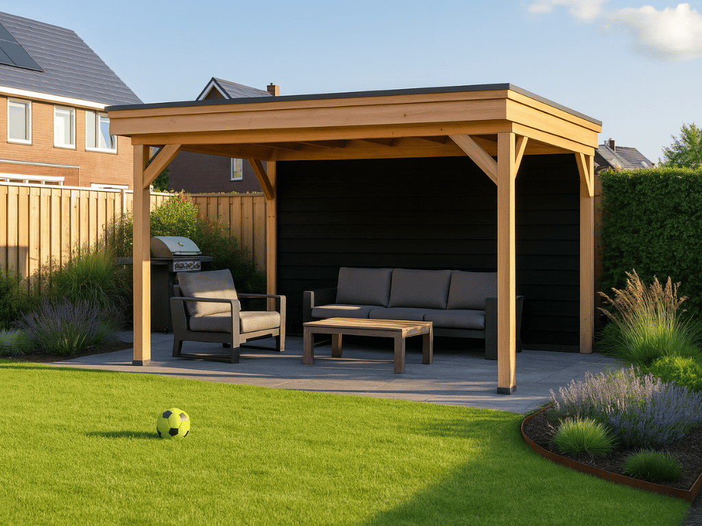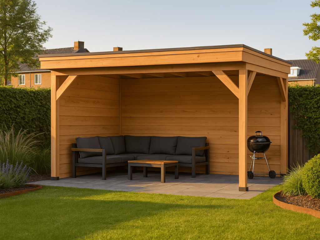 - Ruim formaat voor optimaal comfort – De overkapping van 400 cm breed en 300 cm diep biedt genoeg ruimte voor een loungeset, buitenkeuken of ruime eettafel. Ideaal als overdekt terras of als gezellige zithoek in je tuin.