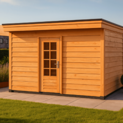 De constructie is vervaardigd uit duurzaam, fijnbezaagd Noord-Europees douglashout – een houtsoort met een warme kleur en mooie vlamstructuur. Dankzij de robuuste uitvoering en het slimme bouwpakket heb je in no-time een stevig en stijlvol buitenverblijf staan.