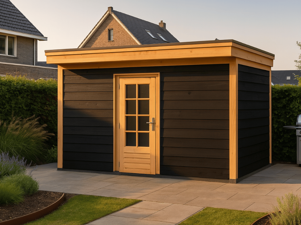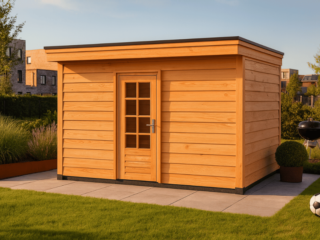 - Weerbestendig plat dak – Het platte dak kan eenvoudig waterdicht gemaakt worden met EPDM dakfolie. Met aluminium daktrimmen werk je het strak af. Voor regenwaterafvoer is er een bijpassende set verkrijgbaar in pvc.