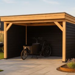 Als optie kan je kiezen om je overkapping af te maken met zweeds rabat wanden. Ga je voor de zwart gespoten variant? Dan zijn dit zwart gespoten vurenhouten planken, omdat vuren zich beter en mooier laat bewerken met beits dan Douglashout. Afwerking met zweeds rabat is een echte aanrader! Past dit niet bij jouw stijl? Vraag dan een offerte aan voor een modernere afwerking met onze rhombusprofielplanken.