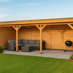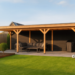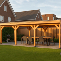 Met deze douglas overkapping 900×300 cm haal je niet alleen ruimte, maar ook stijl en kwaliteit in huis. Of je nu een luxe buitenverblijf, een overdekt terras of een werkruimte in de tuin wilt creëren: dit doe-het-zelf bouwpakket biedt de vrijheid om jouw buitenruimte volledig naar wens in te richten.