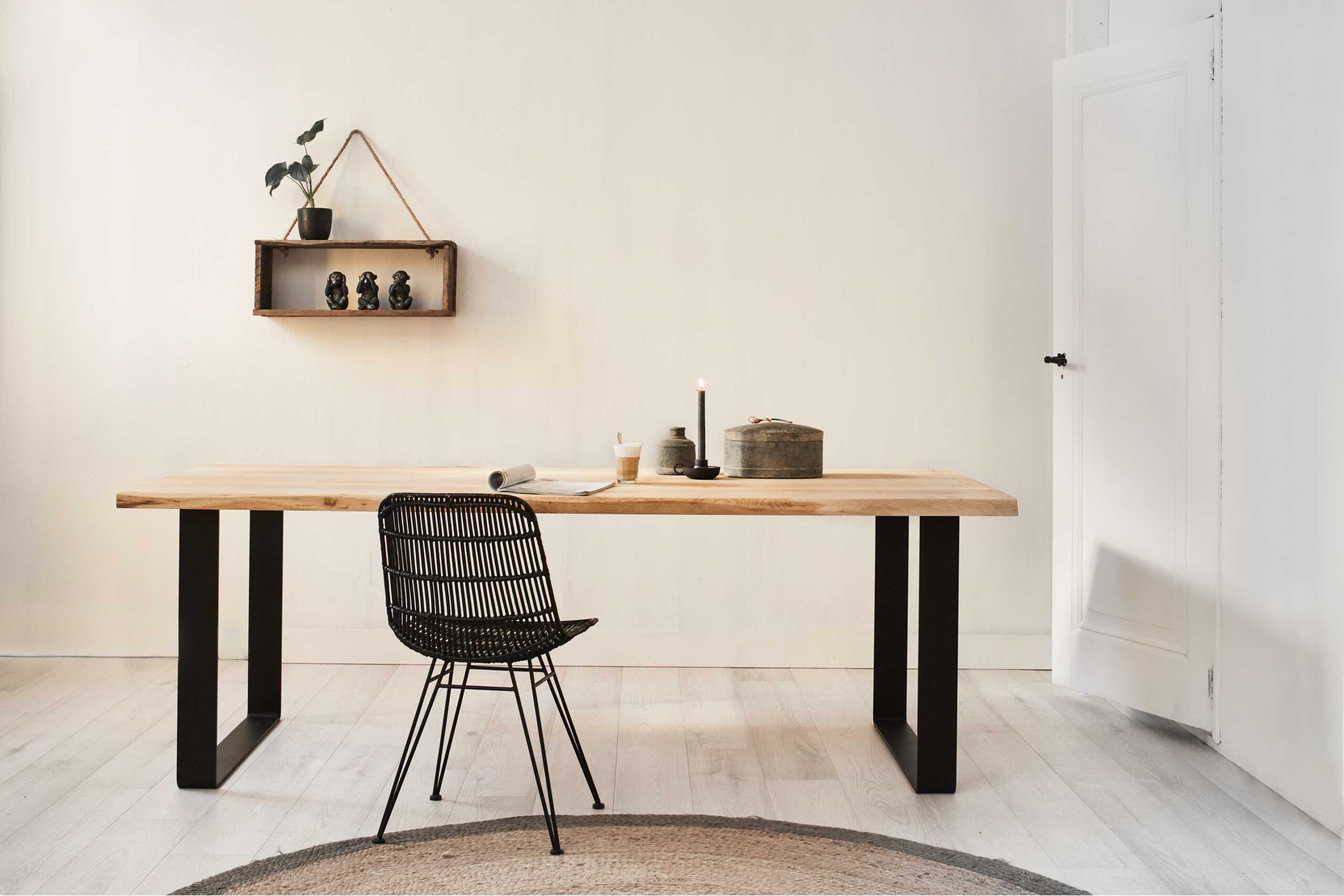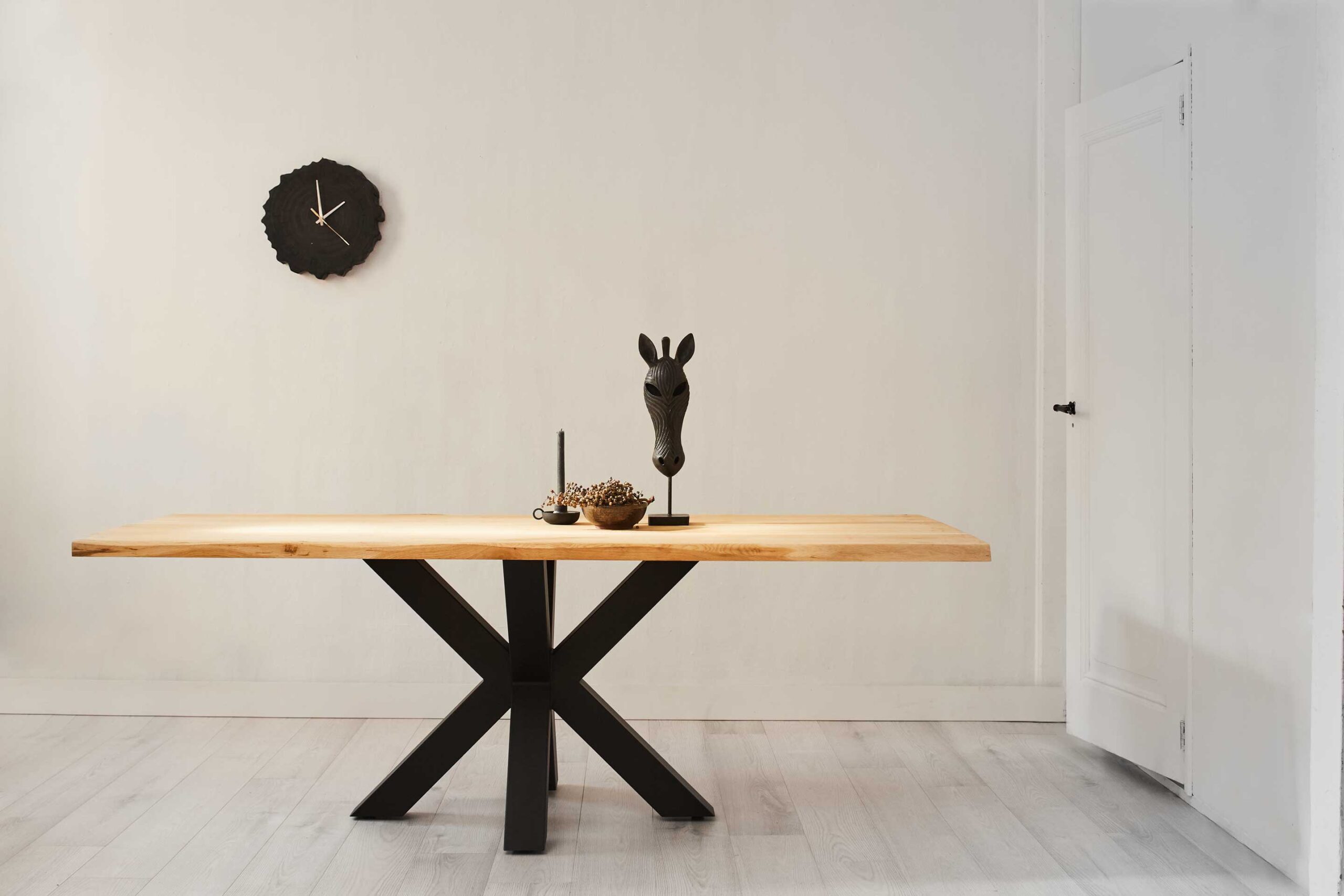 💡 Tip: Combineer uw eiken boomstamtafelblad met een stalen onderstel voor een stoere industriële look, of kies een houten onderstel voor een warme, landelijke stijl.