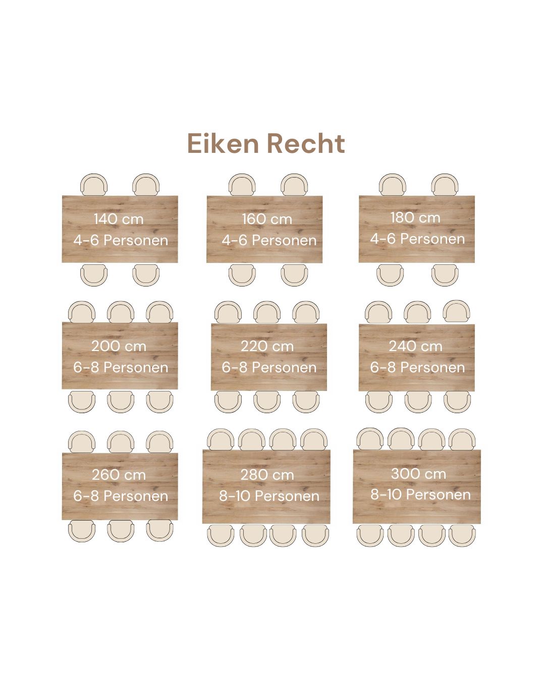 Let op: Hout is een natuurproduct. Hierdoor kunnen tafelbladen onderling verschillen in kleur en structuur. De bladen zijn meerdere malen teruggedroogd, waardoor de kans op werking en scheurvorming minimaal is. Toch kan massief eiken altijd iets “werken”. Scheurvorming of werking valt daarom niet onder garantie.