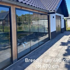 U heeft ook de keuze tussen helder glas voor een open, ruimtelijk effect of privacyglas voor meer beslotenheid. Onze glazen schuifwanden combineren functionaliteit met een strak design, ideaal voor elke woon- of buitenruimte.