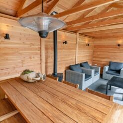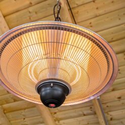 stijlvol en hoogwaardig design van volledig gegoten aluminium. halogeenquartz verwarmingselement. 5-uurs timer.
