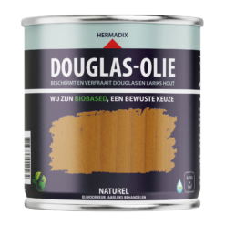 Hermadix Douglas-olie is een watergedragen, mens- en milieuvriendelijk olie op basis van natuurlijke ingrediënten, speciaal ontwikkeld voor nieuw en oud Douglas en Lariks hout. Douglas-olie geeft een mooie transparante uitstraling zodat de houtnerf- en structuur zichtbaar blijven. Douglas-olie dringt diep in het hout en geeft een matte natuurlijke uitstraling. Douglas-olie droogt snel en is makkelijk verwerkbaar.