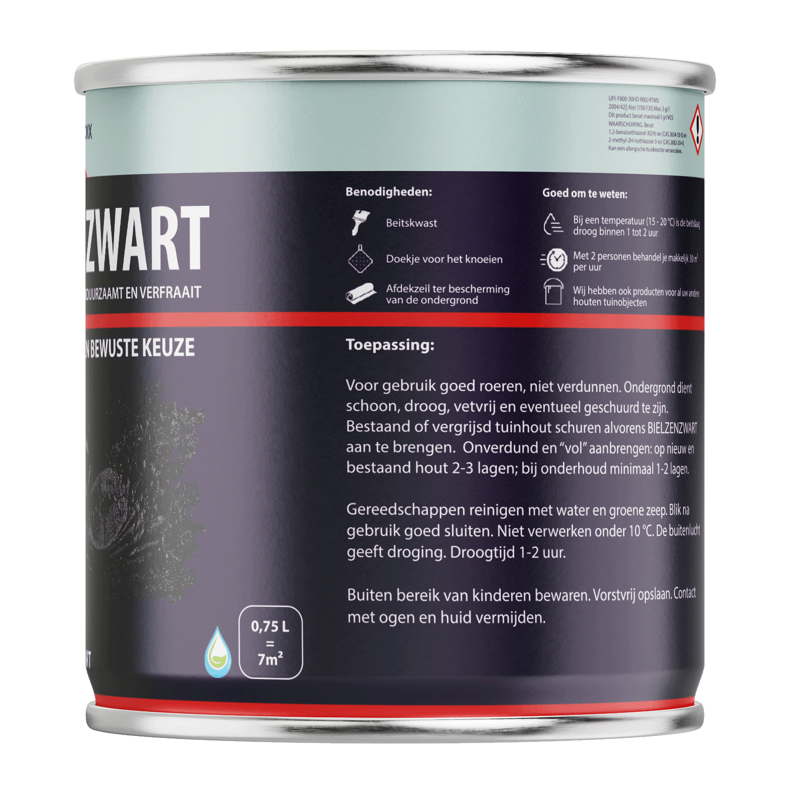 Droogtijd 1-2 uur. Buiten bereik van kinderen bewaren. Vorstvrij opslaan. Contact met ogen