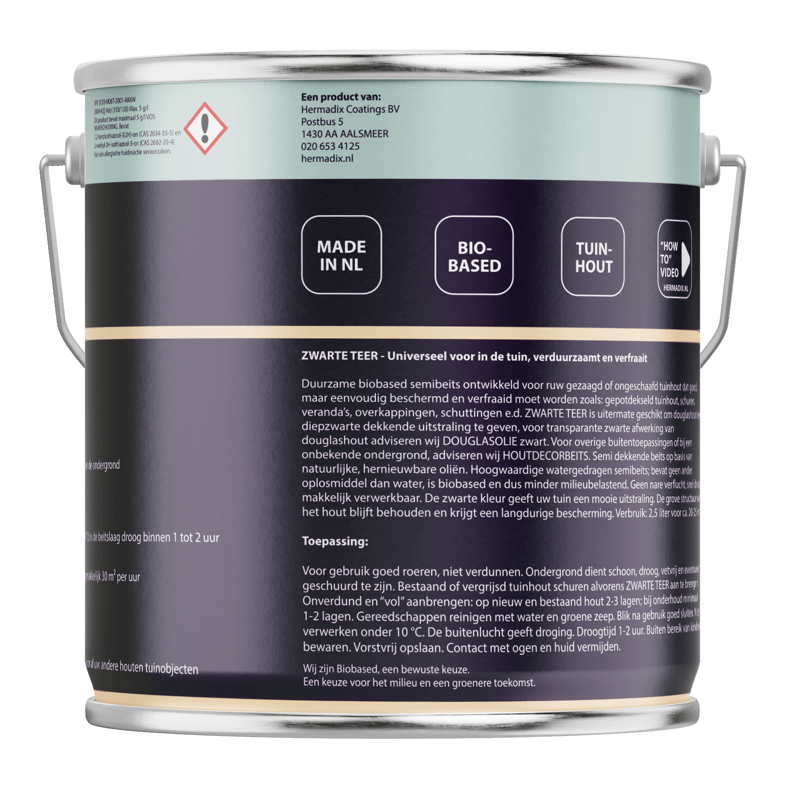 ZWARTE TEER – Universeel voor in de tuin, verduurzaamt en verfraait