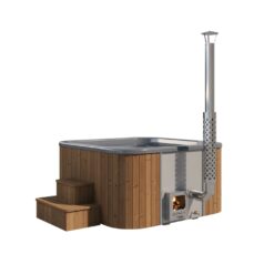 inclusief: Rvs houtkachel, Afdekkap, Bevestigingsmaterialen, Bubbelsysteem, Digitale thermometer, Led-verlichting, Polyester binnenbak, Rookgasafvoerpijp, Trap.