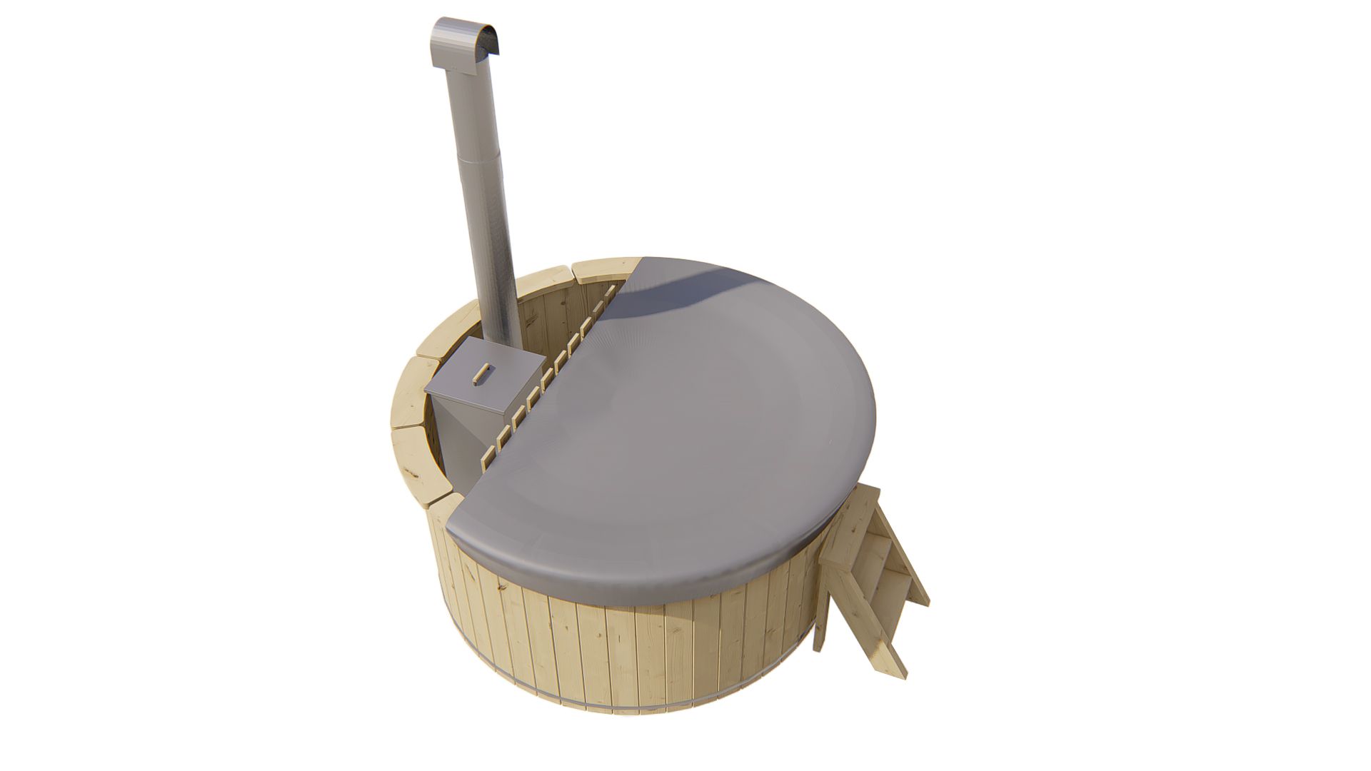 inclusief: Bevestigingsmaterialen, Afdekhoes, aluminium houtkachel, pijp en trap.