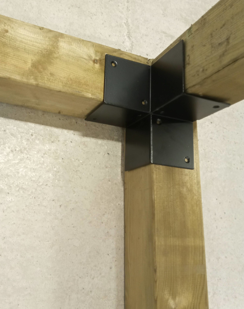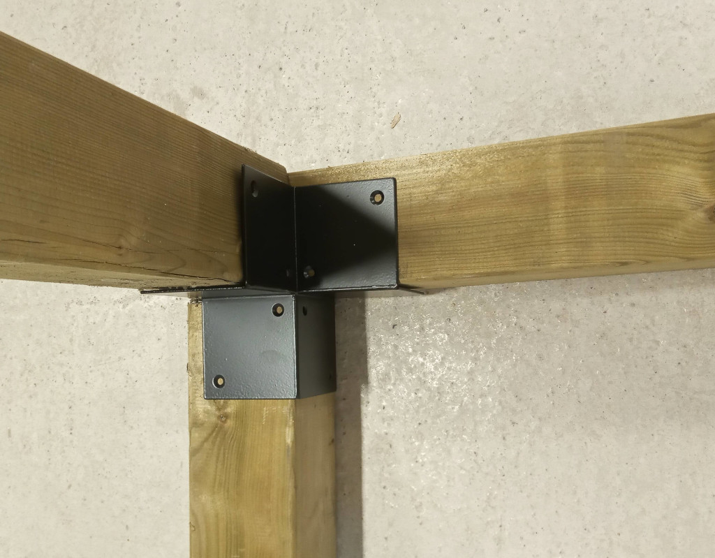 De 3-model houtverbinding zwart is de ideale keuze voor het realiseren van sterke en stabiele verbindingen tussen drie houten balken. Deze stevige verbinding is ontworpen voor constructies waarbij meerdere houten delen bij elkaar komen, zoals bij meubels, houten frames, of pergola’s.