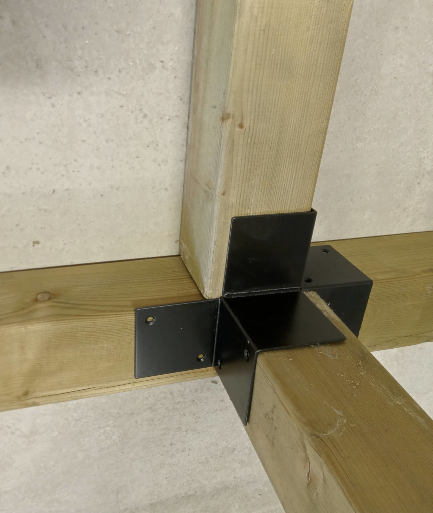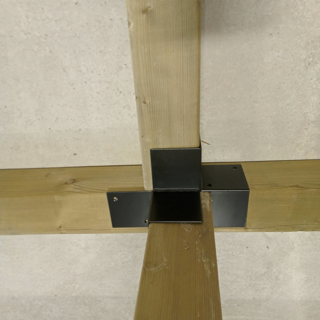 De 4-model houtverbinding zwart is ontworpen voor het verbinden van vier houten balken, waardoor het perfect is voor robuuste constructies zoals pergola’s, hekwerken, of meubels. Deze verbinding biedt uitzonderlijke stabiliteit en stevigheid, en zorgt voor een nauwkeurige, duurzame montage.