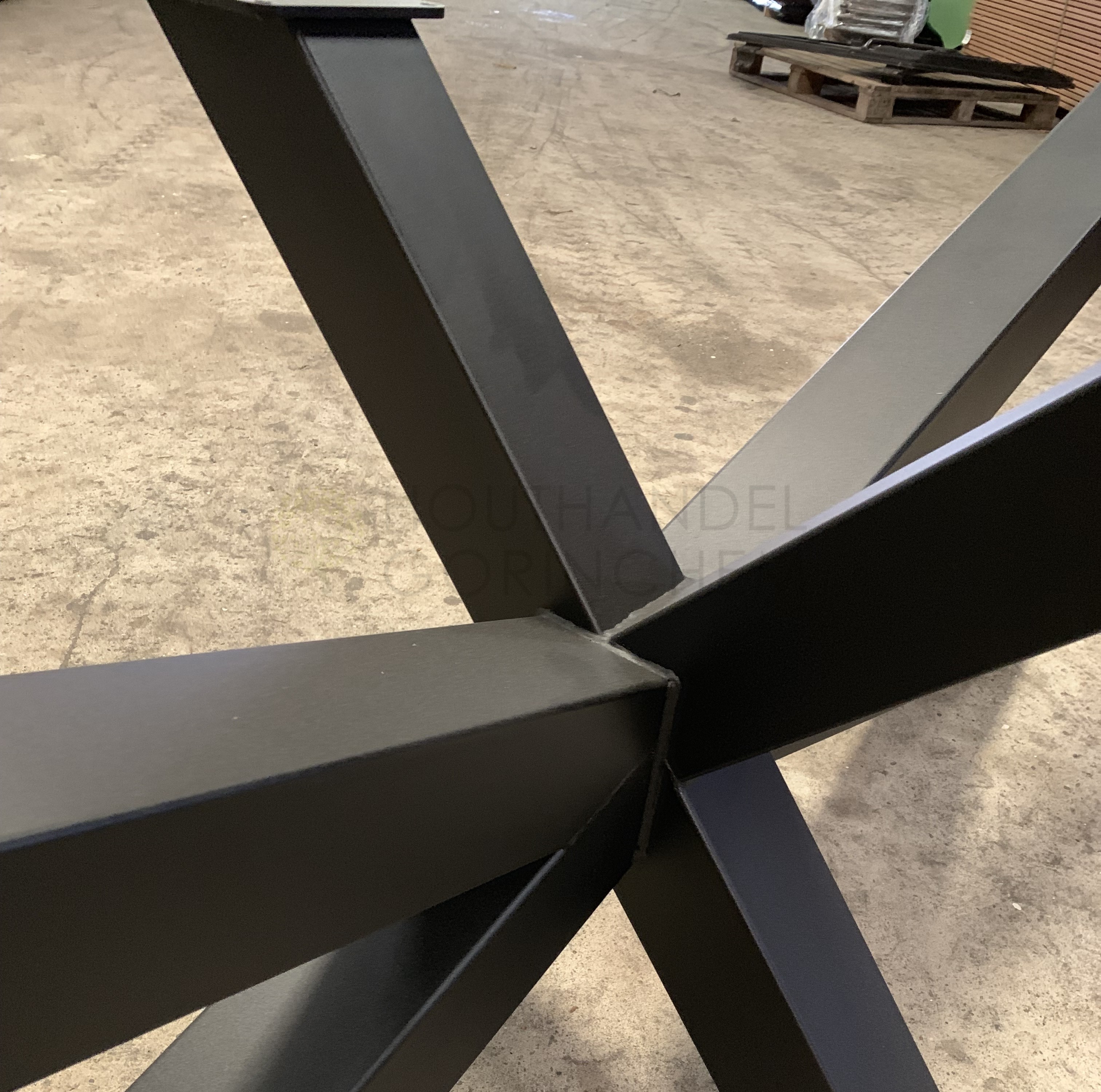 Transformeer uw eet- of werkruimte met onze indrukwekkende zwarte gepoedercoate matrix tafelpoot. Deze hoogwaardige, duurzame constructie biedt niet alleen stabiliteit maar voegt ook een vleugje moderniteit toe aan elke omgeving. Vakkundig vervaardigd voor zowel stijl als functionaliteit, deze tafelpoot belichaamt eigentijdse elegantie. Het zwarte poedercoatingproces zorgt niet alleen voor een strakke afwerking maar verbetert ook de weerstand tegen krassen en slijtage. Maak een statement in uw ruimte met deze unieke combinatie van design en robuustheid. Ontdek de perfecte synergie tussen vorm en functie met onze zwarte matrix tafelpoot en creëer een ambiance die zowel verfijnd als praktisch is.