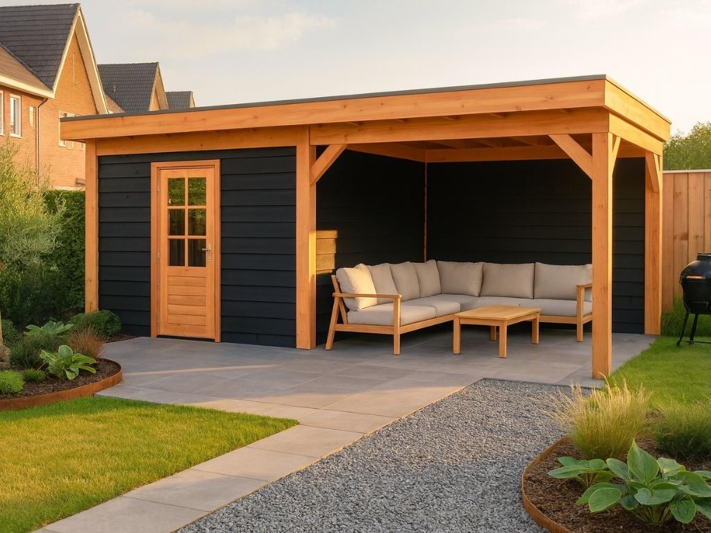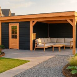 Wil je meer privacy of een luxere afwerking? Kies dan voor wanden van zweeds rabat. De zwart gespoten variant wordt uitgevoerd in vurenhout, omdat dit hout zich beter laat bewerken met beits. Liever een modernere look? Ga dan voor rhombusprofielplanken.
