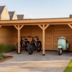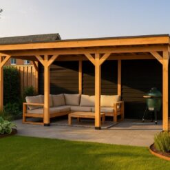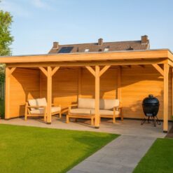 Wil je het hele jaar door genieten van het buitenleven? Dan is deze douglas overkapping van 750×300 cm een uitstekende keuze. Dankzij de extra dikke 14×14 cm staanders krijgt dit model een nog robuustere uitstraling en voelt de constructie bijzonder stabiel aan. Dit maakt de overkapping niet alleen praktisch, maar ook een luxe blikvanger in de tuin.