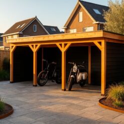 Een goede fundering is essentieel voor een langdurige en stabiele constructie. Je kunt kiezen voor betonpoeren, gestort beton, een houten vlonder of schroeffundering. Opsluitbanden of funderingsbalken zorgen ervoor dat optrekkend vocht wordt tegengegaan en verlengen de levensduur van het hout.