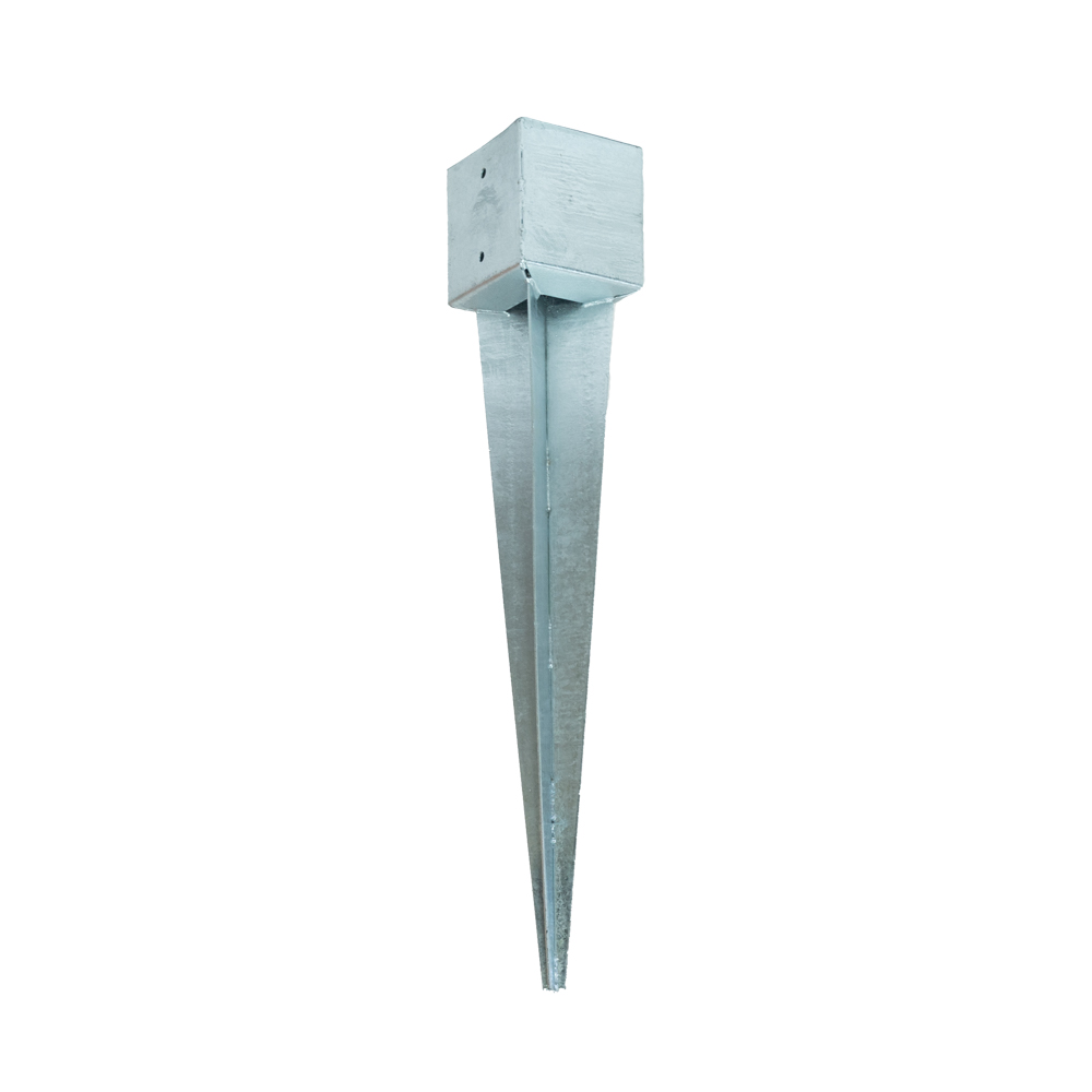 De Paalhouder met Pen 121x121x900mm is de perfecte oplossing voor het stevig bevestigen van houten palen in de grond. Deze paalhouder is vervaardigd uit 2,5 mm dik staal en voorzien van een duurzame vuurverzinkte afwerking, waardoor hij bestand is tegen roest en weersinvloeden. Ideaal voor grenen, Douglas of hardhouten palen met een kopmaat van circa 12×12 cm.