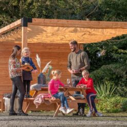 Gemaakt van 3 cm dik Geolied Hardhout! 160 cm x 75 cm x 150 cm (lengte x hoogte x breedte).