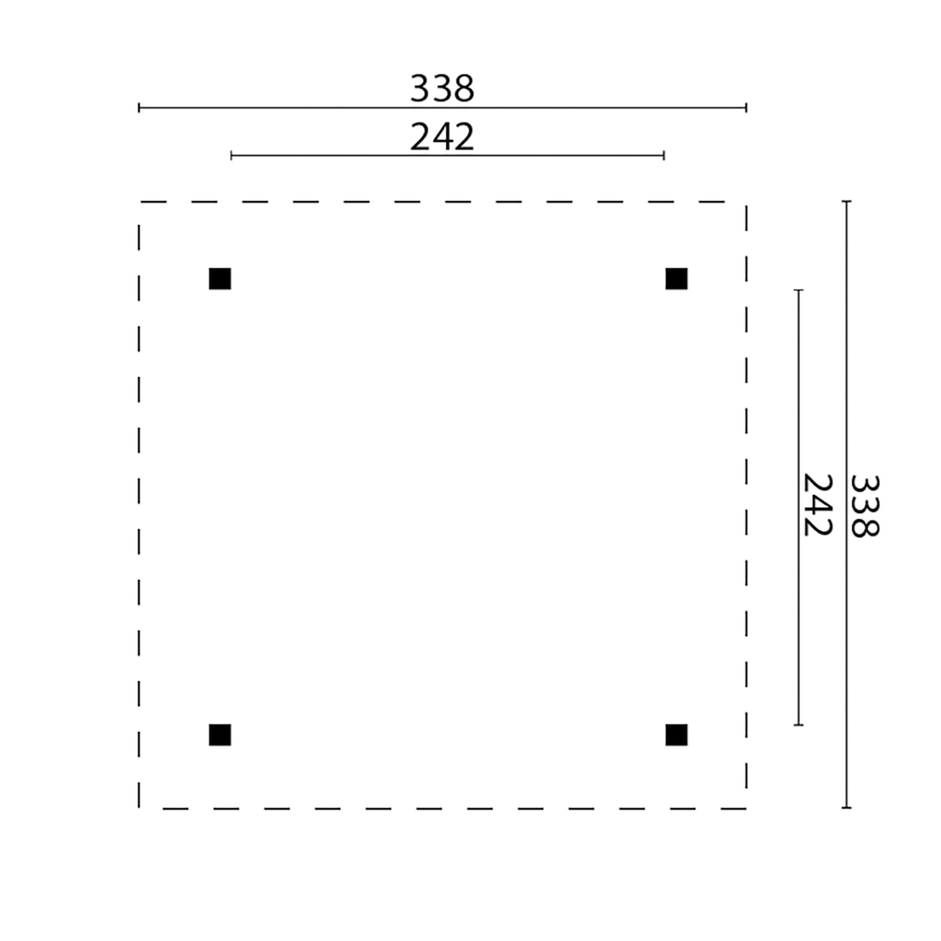 Afmeting: 338 cm x 338 cm x 306 cm ( Diepte x Breedte x Nokhoogte )