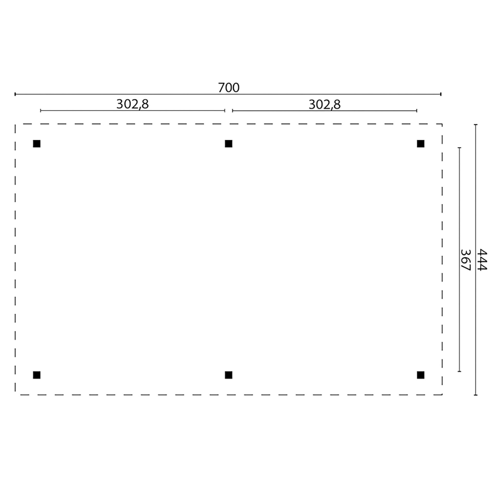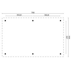 Afmeting: 444 cm x 700 cm x 351 cm ( Diepte x Breedte x Nokhoogte )