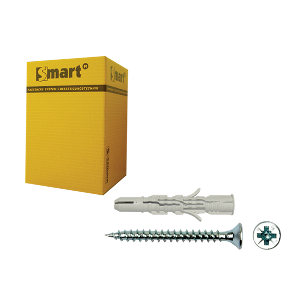 De Slagpluggen met Schroef van SMART bieden een betrouwbare en efficiënte oplossing voor het bevestigen van lichte tot middelzware constructies in beton, baksteen of andere massieve materialen. Deze hoogwaardige slagpluggen worden geleverd met verzinkte schroeven en zijn verpakt in handige kartonverpakkingen van 50 stuks.