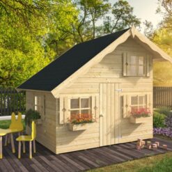 - Dit speelhuisje wordt met voorgemonteerde wanden geleverd