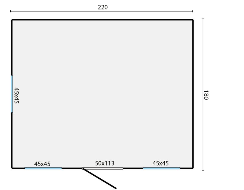 - Afmeting: 180 cm x 220 cm x 230 cm. ( lengte x breedte x nokhoogte )