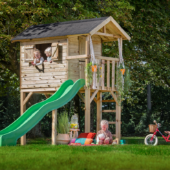 Inclusief dakleer, houten vloer en bevestigingsmaterialen. exclusief glijbaan.