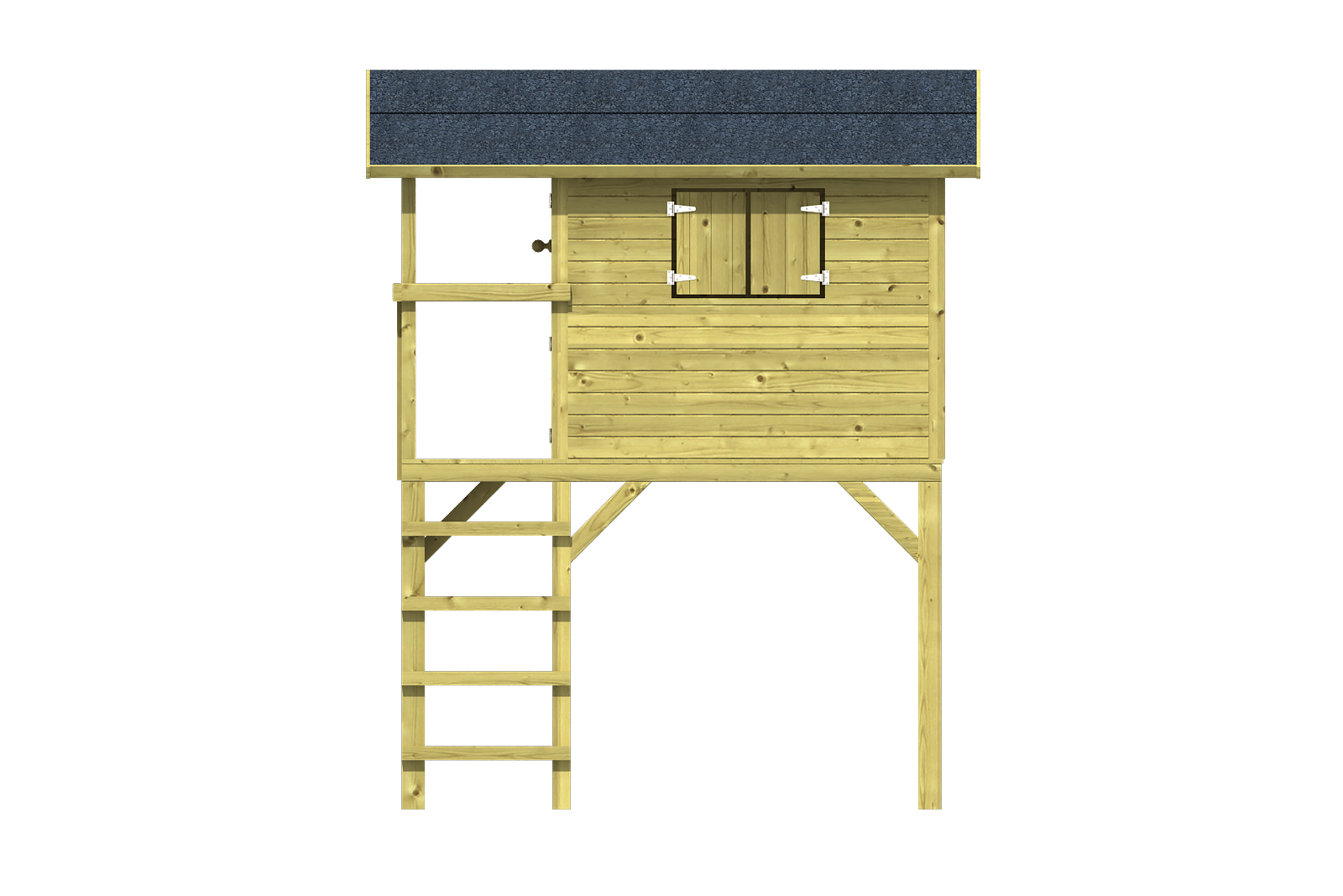 Dit speelhuisje wordt met voorgemonteerde wanden geleverd.