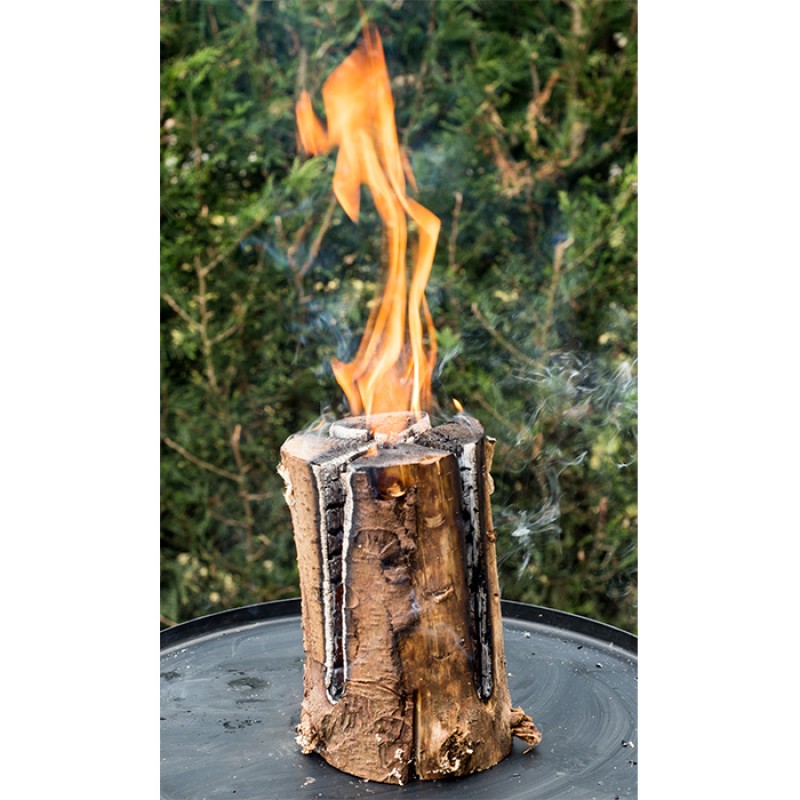 Aanmaakblokje aansteken en de fakkel is klaar voor 2 uur brandtijd!